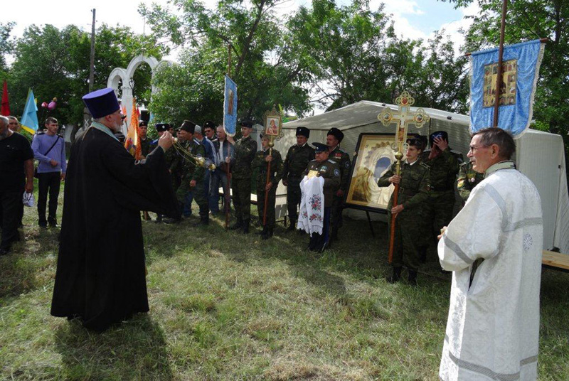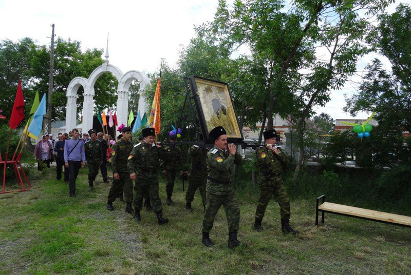 АДАМОВКА. 12 июня 2015 г. В центральном парке Адамовки состоялись праздничные мероприятия, посвящённые Дню России. Прихожане храма Покрова Пресвятой Богородицы посёлка Адамовки принесли крестным ходом на праздник икону Божией матери Табынская, покровительницу Оренбуржья.