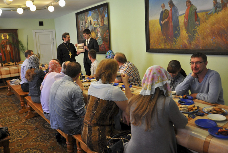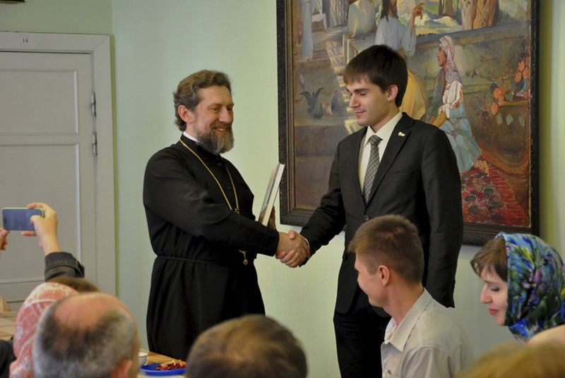 Завершилось мероприятие чаепитием. Руководитель молодёжного представительства Оренбургской области при Правительстве РФ А.Семенов вручил инициатору праздничной встречи, протоиерею Димитрию Солонину, книгу «Чкаловцы», являющуюся результатом совместного труда членов землячества.