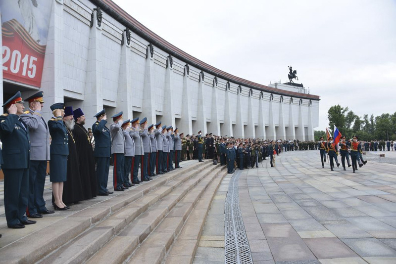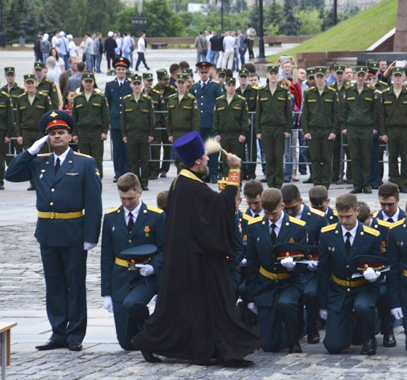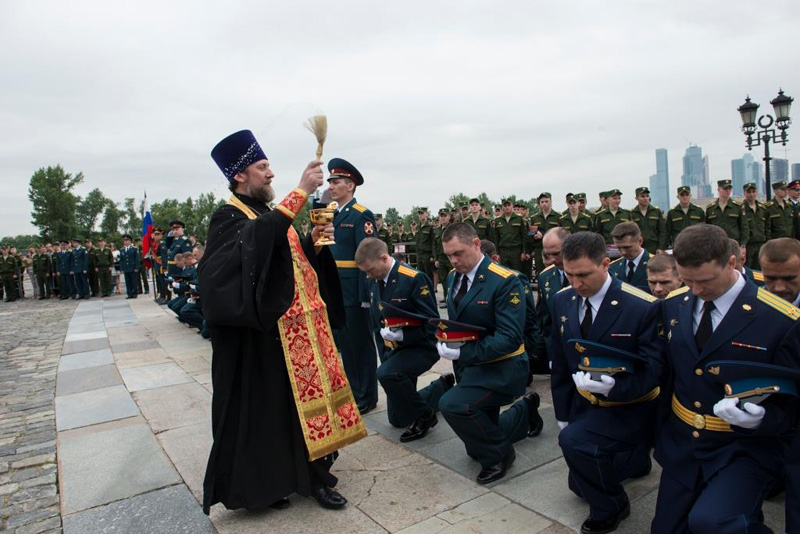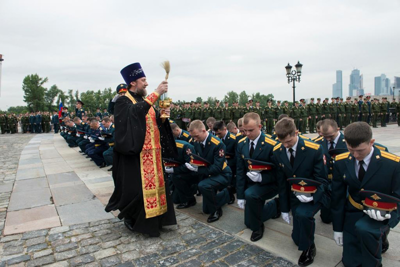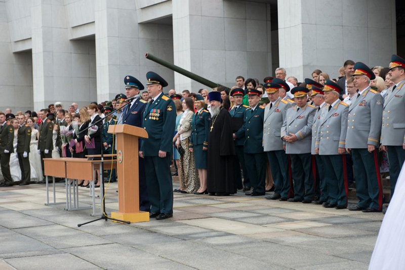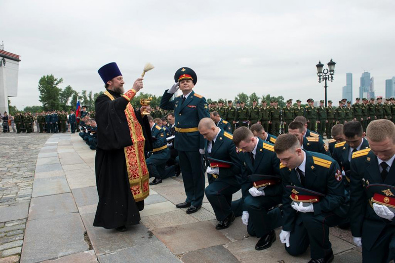 МОСКВА. 20 июня 2015 г. На Поклонной горе состоялся выпускной церемониал Военного университета Министерства обороны. Мероприятие посетил помощник начальника Военного университета по работе с верующими военнослужащими, клирик Орской епархии протоиерей Димитрий Солонин.