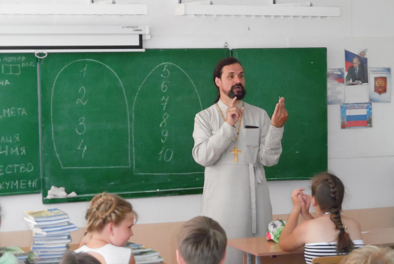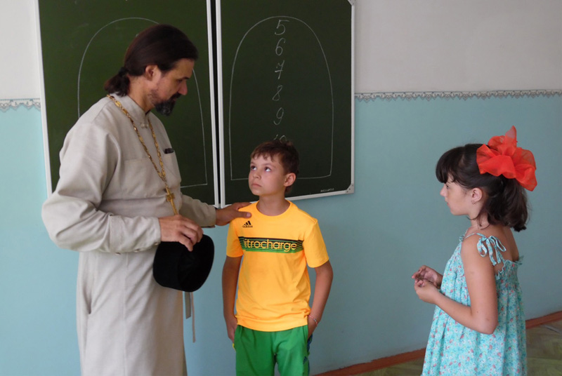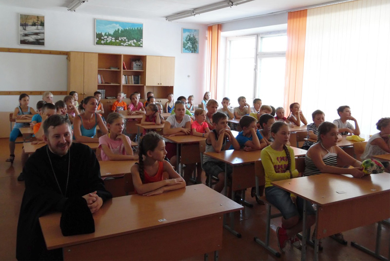 НОВОТРОИЦК. 23 июня 2015 г. С 18 по 23 июня благочинный Новотроицкого округа, настоятель собора свв. апп. Петра и Павла г. Новотроицка протоиерей Сергий Кваша и представители Новотроицкого благочиния посетили летние школьные лагеря дневного пребывания.