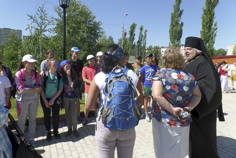 Игумен Онисим провел беседу с участниками выездного лагеря о том, какие духовные ценности входят в понятие Память, рассказал о предстоящем крещении ребят в походе у водохранилища, о нравственных правилах совместного пребывания подростков в многодневном походе. Первая встреча священника с детьми произошла у обелиска Славы в Ясном. Поход начался.
