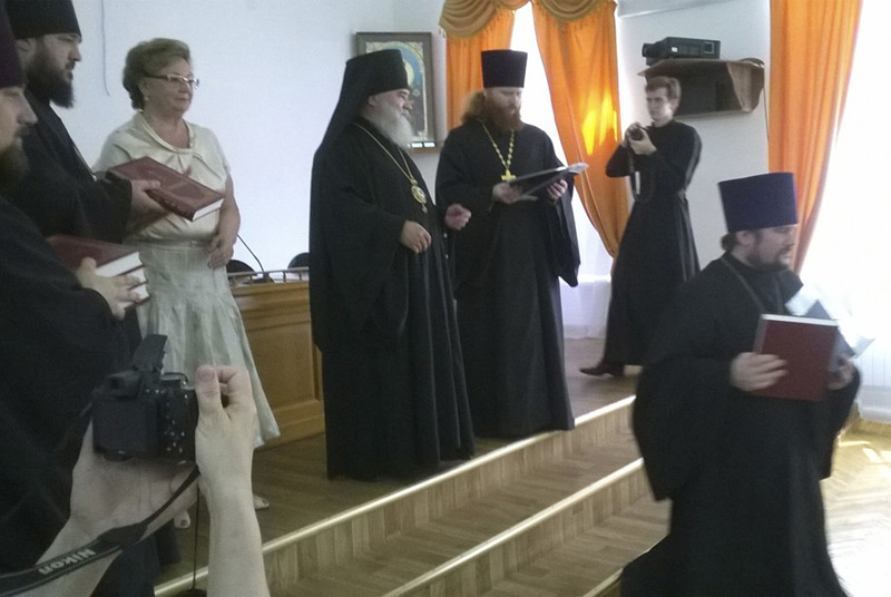 По окончании богослужения епископ Алексий обратился с архипастырским словом к выпускникам семинарии, после чего Преосвященнейший владыка и председатель попечительского совета семинарии Любовь Федоровна Берг вручили дипломы выпускникам.