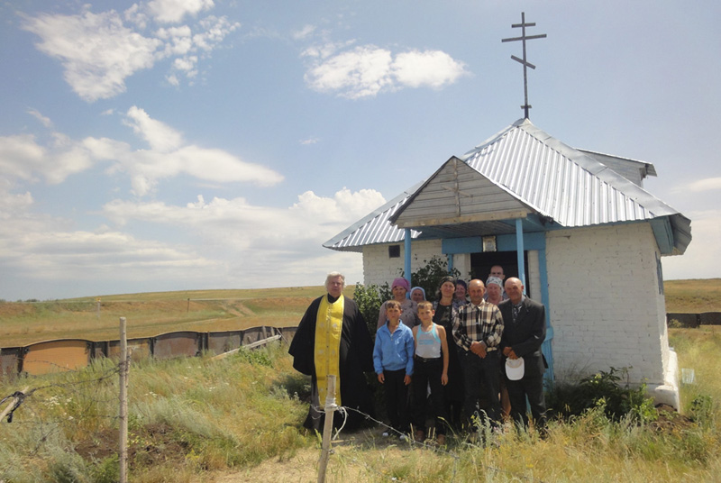 Беседу о православных святынях, о единении нравственно-православных традиций в истории государства Российского и Русской Православной Церкви отец Онисим провел как всегда в доме прихожанки Галины, который на время приезда священника традиционно становится молельным православным центром. После беседы и ответов на вопросы игумен Онисим в часовне на кладбище Еленовки исповедовал и причащал православных жителей, затем вместе с еленовцами молился за Россию, за мир во время брани и нестроений.