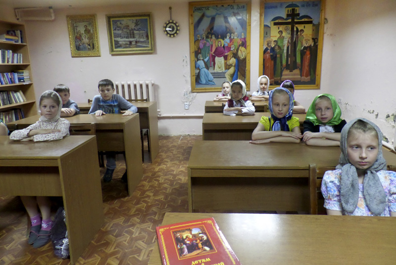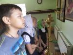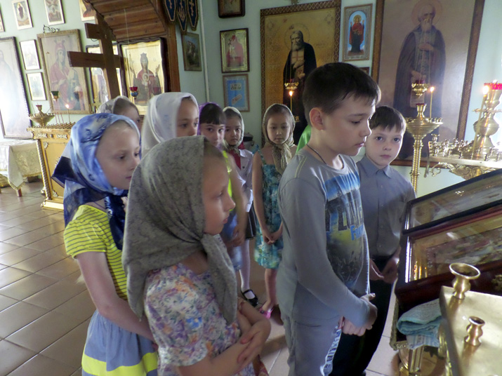 Лето – время не только спортивных мероприятий и активного отдыха для детей в городском лагере. Вот и в этот день ребятишки вновь пришли в церковь, кто-то в первый раз. Рассказывая о храме, о жизни прихода, учитель старается привлечь ребят в воскресную школу, что начнет свои занятия с 1 октября. После экскурсии по храму ребята спускаются в приходскую библиотеку, знакомятся с книгами, местом занятий воскресной школы, узнают о том, что ждет их на уроках, если они придут после каникул в церковь.