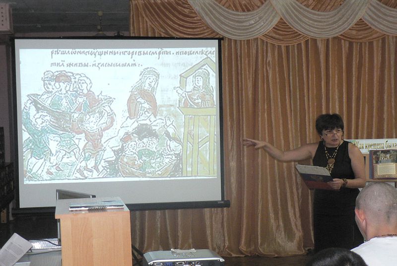В читальном зале прошел православный видео-час, во время которого организаторы мероприятия, сотрудники библиотеки, продемонстрировали документальный фильм «1025 лет Крещения Руси».