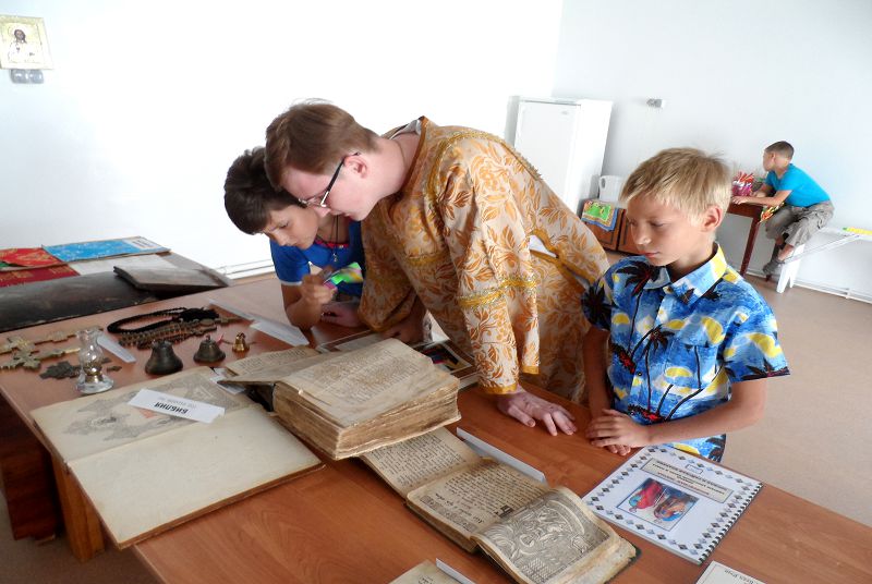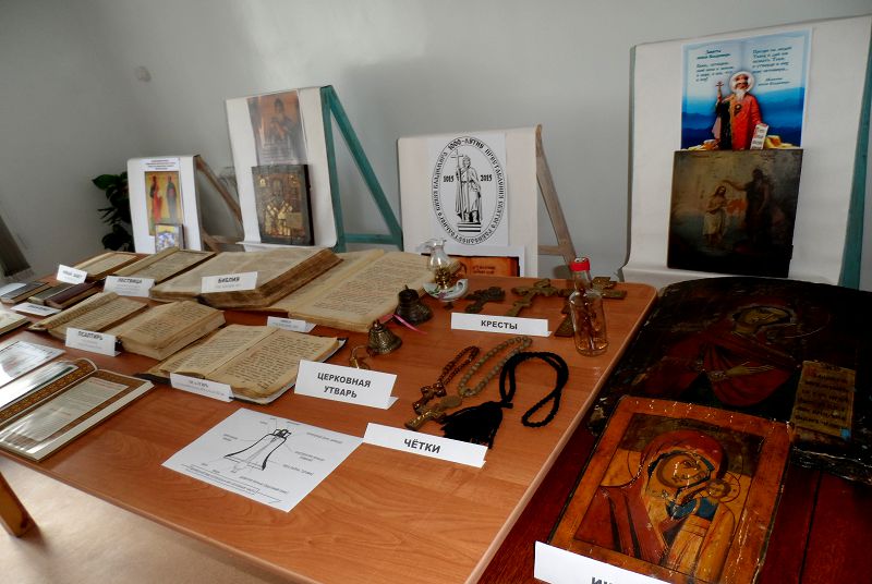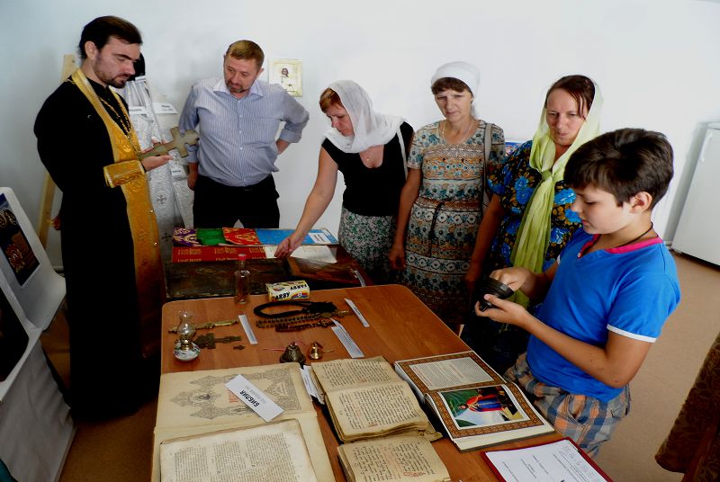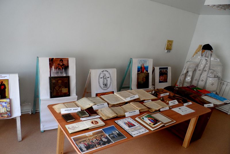 Посетители могут не просто увидеть, но и прикоснуться к уникальным старинным православным книгам - Библия, изданная в 1863 году, Евангелие от 1893 года, Новый Завет - 1897 г., Лествица преподобного отца нашего Иоанна Лествичника – 1852 г. и др.
