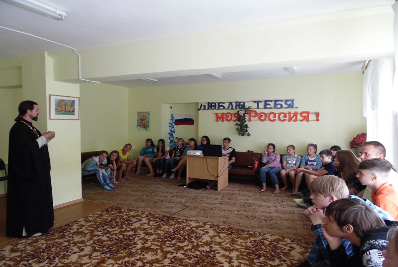 НОВОТРОИЦК. 27 июля 2015 г. Благочинный Новотроицкого округа, настоятель прихода храма святых апостолов Петра и Павла г. Новотроицка, протоиерей Сергий Кваша посетил детский оздоровительный загородный лагерь «Чайка».