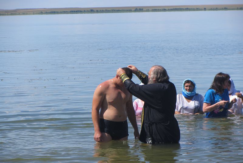 ЭНЕРГЕТИК. 28 июля 2015 г. В храме во имя святого великомученика Георгия поселка Энергетик Новоорского района Оренбургской области состоялось торжественное мероприятие по случаю тысячелетия со дня кончины святого равноапостольного князя Владимира. В этот знаменательный день одновременно приняли Святое Крещение пятнадцать человек. Таинство совершил настоятель храма Святого Георгия иерей Алексий Новиков.