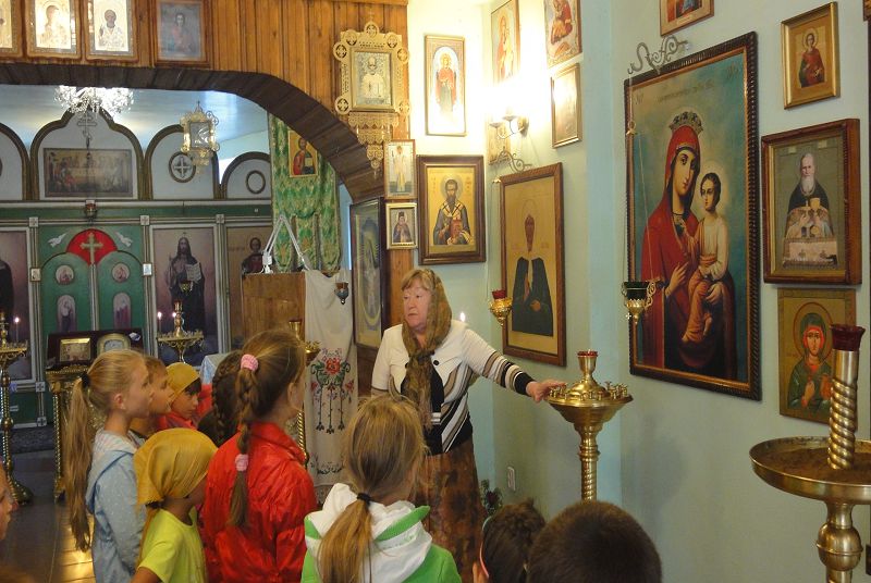 Катехизатор познакомила юных христиан с внутренним устройством православного храма и особое внимание уделила иконам. Храмовые образа помогли детям приоткрыть необъятный таинственный мир жизни души христианина, истории Православной веры во всем мире и истории Русской Православной Церкви.