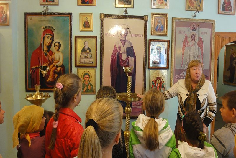Встреча была посвящена теме «Святые православного мира и их благодатная помощь в истории России». Детей сопровождали учителя, пожелавшие помочь в организации беседы, которая для их маленьких учеников станет одной из первых встреч с церковью, её ценностями, традициями и святынями.