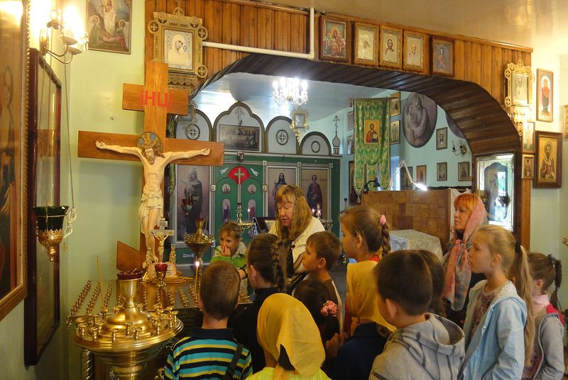 ЯСНЫЙ. 31 августа 2015 г. Накануне учебного года катехизатор храма вмч. Пантелеимона, по благословению настоятеля, игумена Онисима (Пашинова), пригласила детей начальных классов средних школ г. Ясного на беседу в храм.
