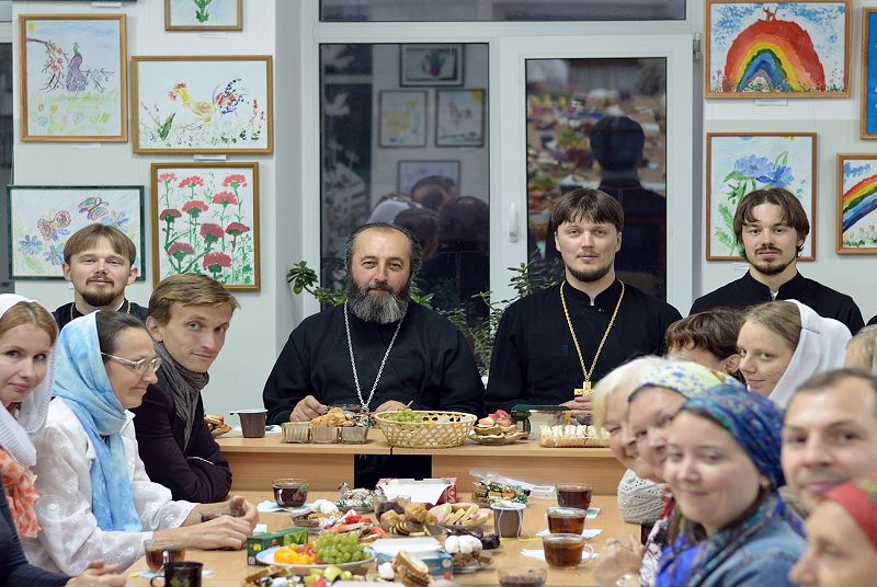 По окончании молебна состоялось традиционное чаепитие, во время которого учащиеся могли пообщаться с преподавателями и друг другом в теплой, дружеской атмосфере. Следует отметить, что в этот день на молебне и чаепитии присутствовали не только те, кто учится на Курсах или поступил в этом году, но и выпускники прежних лет.
