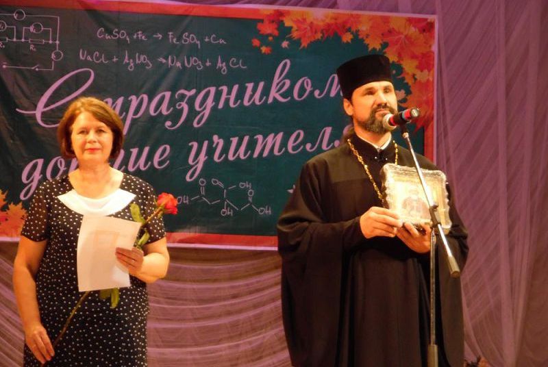 НОВОТРОИЦК. 1 октября 2015 г. Благочинный Новотроицкого округа, настоятель собора святых первоверховных апостолов Петра и Павла г.Новотроицка протоиерей Сергий Кваша принял участие в торжественном мероприятии посвященном Дню учителя.