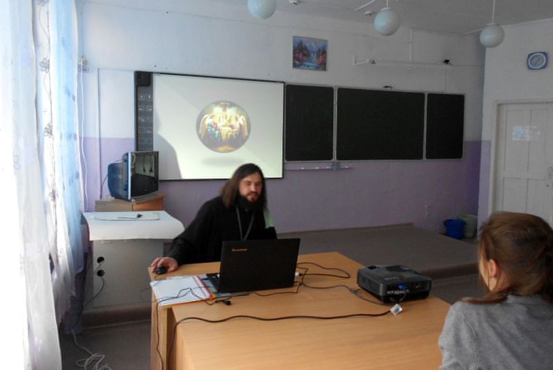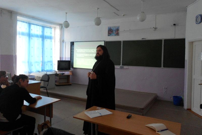 СВЕТЛЫЙ. 7 октября 2015 г. Настоятель храма в честь Покрова Пресвятой Богородицы пос. Светлый, иерей Михаил Рябинов провел беседу со старшеклассниками.