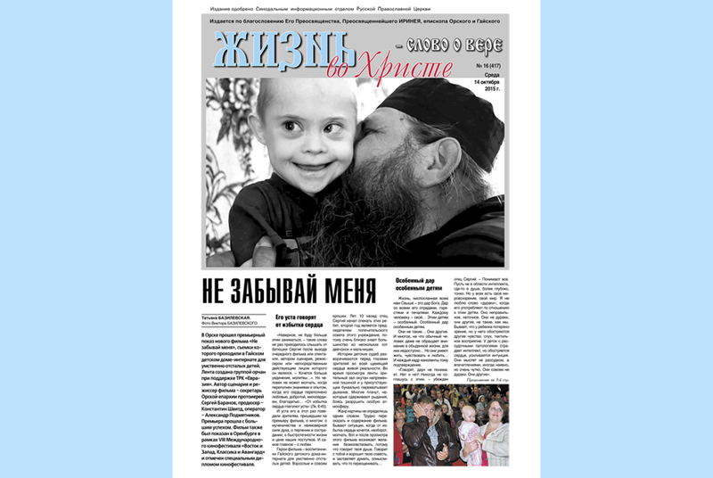 В Орске прошел премьерный показ нового фильма «Не забывай меня», съемки которого проходили в Гайском детском доме-интернате для умственно отсталых детей. Лента создана группой орчан при поддержке ТРК «Евразия». Автор сценария и режиссер фильма – секретарь Орской епархии протоиерей Сергей Баранов. Премьера прошла с большим успехом. Фильм также был показан в Оренбурге в рамках VIII Международного кинофестиваля «Восток и Запад. Классика и Авангард» и отмечен специальным дипломом кинофестиваля. Герои фильма – воспитанники Гайского детского дома-интерната для умственно отсталых детей. Статью на эту тему подготовила Татьяна Базилевская.