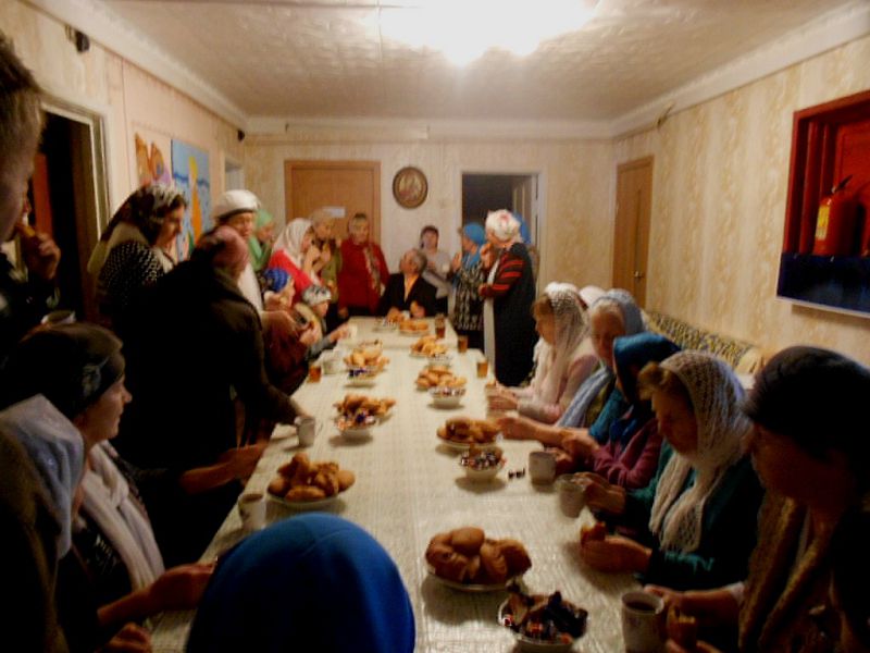 Прихожане продолжили празднование за общим столом с пирогами и сластями.