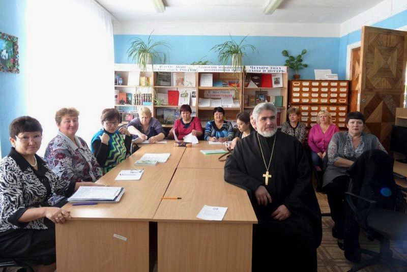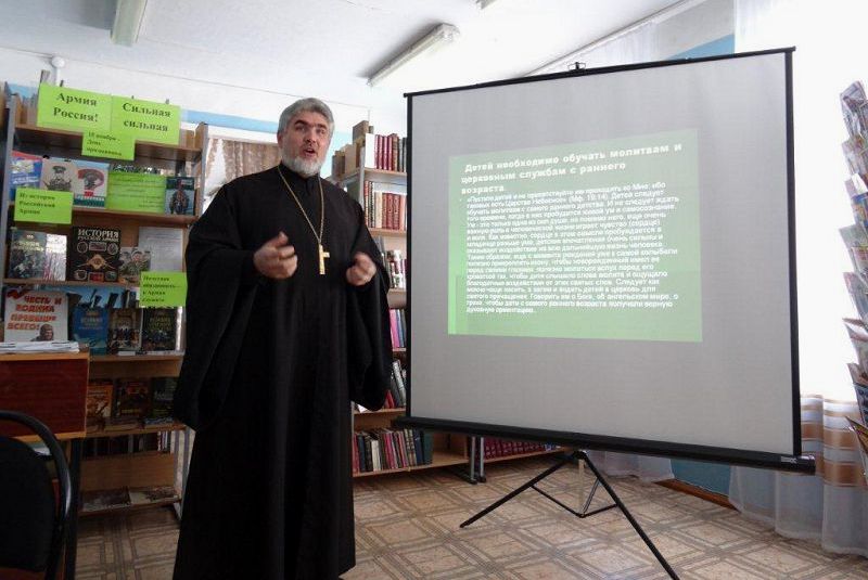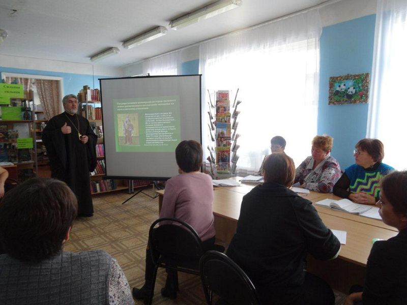 Священник Вячеслав Кочкин выступил с докладом «Духовно-нравственное воспитание молодёжи», в котором он подчеркнул, что достичь результатов в воспитании личности возможно лишь, основываясь на примерах Ветхого и Нового Заветов, а также святоотеческого наследия. Библиотечный фонд может предоставить много православной литературы, имеются и уникальные издания: фотокопии Киевской Псалтири и первой Азбуки, «Слово о полку Игореве». Читатели свободно могут пользоваться всеми томами Православной Энциклопедии. Приход Покрова Пресвятой Богородицы ежегодно передаёт читателям района подшивку газеты Орской епархии «Жизнь во Христе» и «Ведомости Оренбургской митрополии».