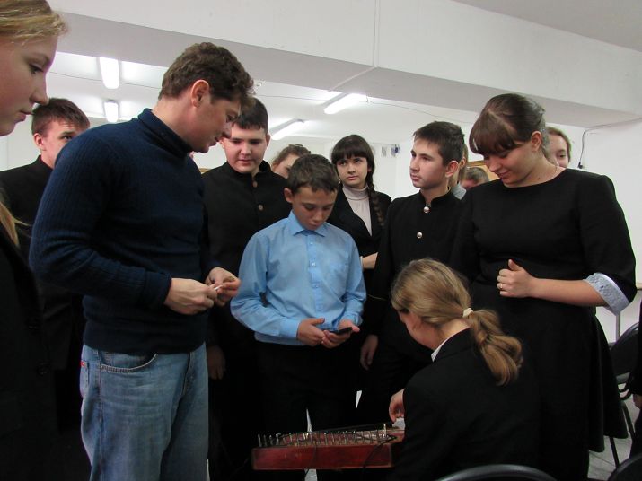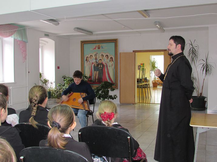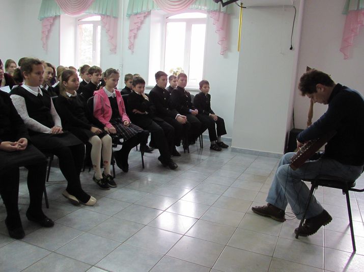 ОРСК. 12 ноября 2015 г. В Православной гимназии при приходе Преображения Господня г. Орска выступил гусляр Максим Гавриленко из Костромы.