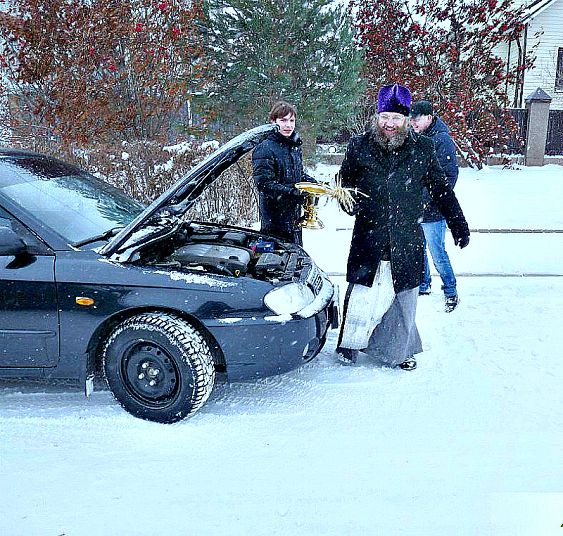 По окончании богослужения на территории кафедрального собора состоялась благотворительная акция ‒ освящение транспортных средств.