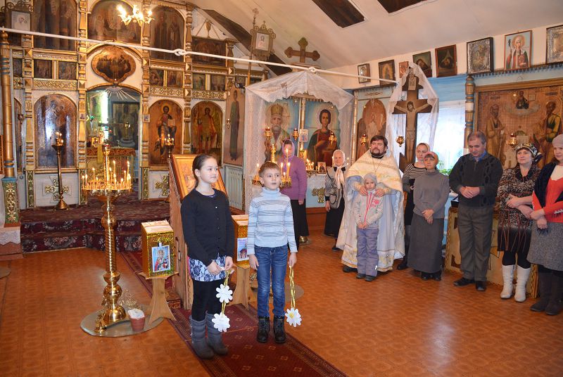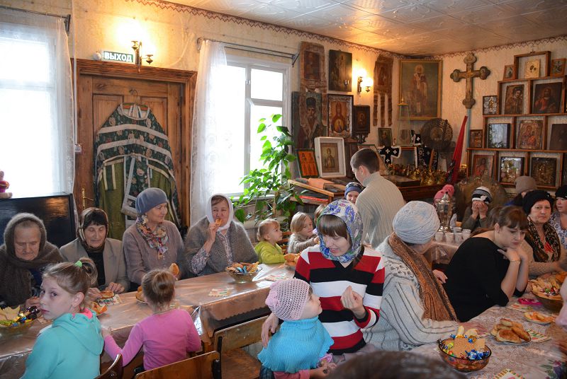 МЕДНОГОРСК. 29 ноября 2015 г. На приходе храма святителя Николая Чудотворца поселка Заречного по окончании Божественной литургии в день матери состоялось чествование мам, бабушек,прихожанок и вручение им подарков.