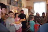 Детки заранее готовились к этому торжетсвенному дню, вместе с преподавателями приготовили своими руками подарки для всех прихожанок — «благодатные ромашки», цветы из бумаги с духовными изречениями-наставлениями святых отцов. В исполнении учеников воскресной школы прозвучали стихотворения, посвященные мамам. «Бесконечная твоя доброта и забота не знает усталости, материнской души красота неподвластна невзгодам и старости!» — очень трогательно звучали слова из детских уст. Из храма все присутствующие проследовали в класс воскресной школы, где детскими руками для мам на столах была приготовлена праздничная трапеза. Ученики угощали гостей испеченными своими руками пирожками, подавали чай. Отец Андрей во время чаепития вел беседуо почитании родителей, о том, что, становясь матерью, женщина открывает в себе лучшие христианские качества: доброту, любовь, заботу, терпение. Мамы, бабушки, прихожанки были тронуты таким вниманием, никто не хотел расходиться.