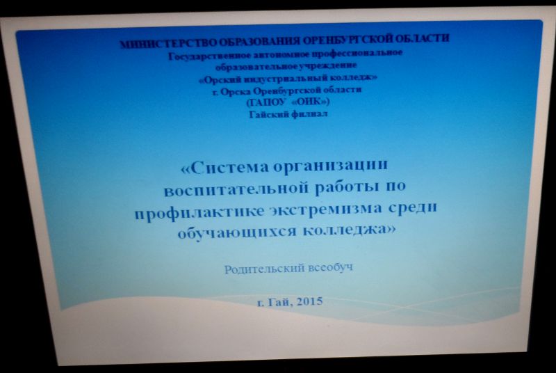ГАЙ. 10 декабря 2015 г. Настоятель храма святых апостолов Петра и Павла города Гая иерей Виталий Кудрявцев был приглашен на встречу с родителями в Гайский филиал Орского индустриального колледжа.