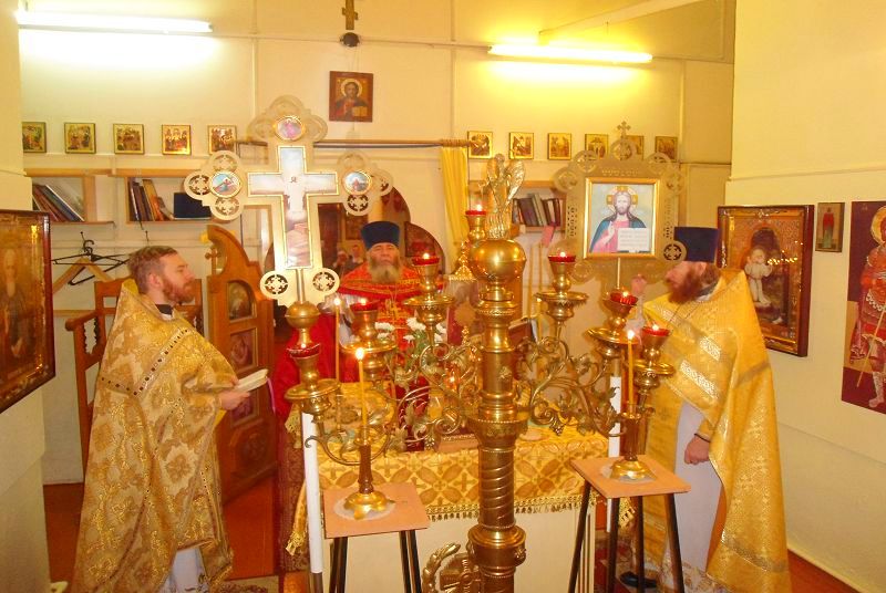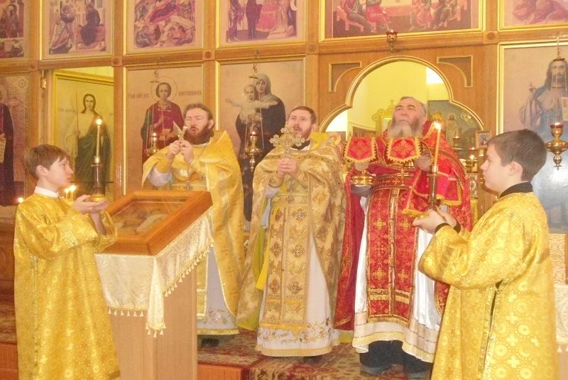 На кануне праздника было совершено всенощное бдение с чтением Акафиста святому. Всенощное бдение совершали: настоятель Георгиевского храма иерей Алексий Новиков и настоятель храма Архангела Михаила г. Орска иерей Геннадий Новиков.