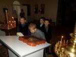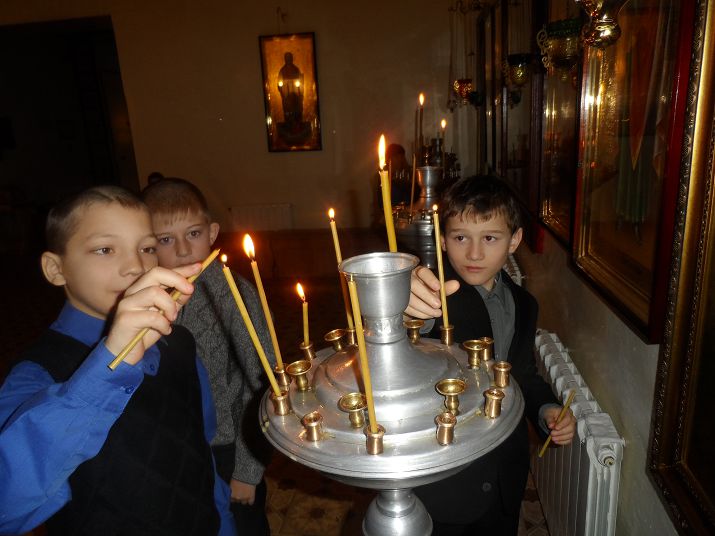 Дети познакомились с внутренним устройством и убранством храма. Увидели, какие иконы наполняют церковь и услышали интересный рассказ о святых. Мальчики помолились о своих родителях и сродниках. Перед иконами поставили свечи, приобретенные на средства прихода.