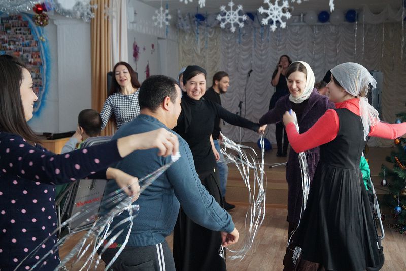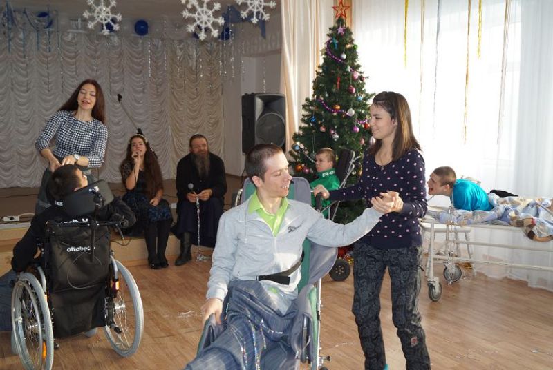 ГАЙ. 31 декабря 2015 г. Настоятель кафедрального собора в честь святого великомученика и Победоносца Георгия, председатель попечительского совета детского дома-интерната г. Гая, протоиерей Сергий Баранов вместе с прихожанами храма организовали новогодний праздник с играми, танцами и песнями для детей с ограниченными физическими возможностями.