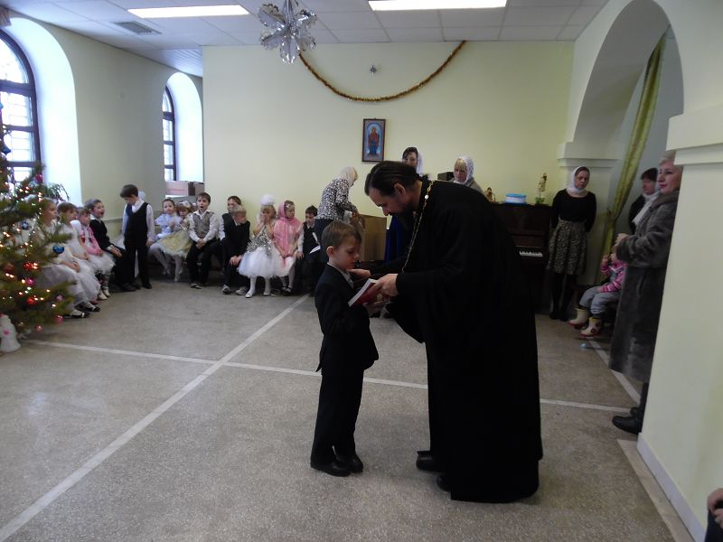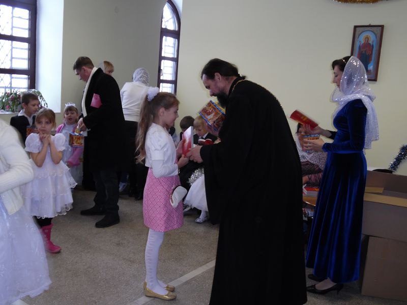 В конце праздника настоятель прихода храма свв. апп. Петра и Павла г. Новотроицка протоиерей Сергий Кваша поздравил всех с праздником, вручил детям Святое Евангелие и Рождественские подарки. Также для ребят было организовано чаепитие и катание на лошадке.