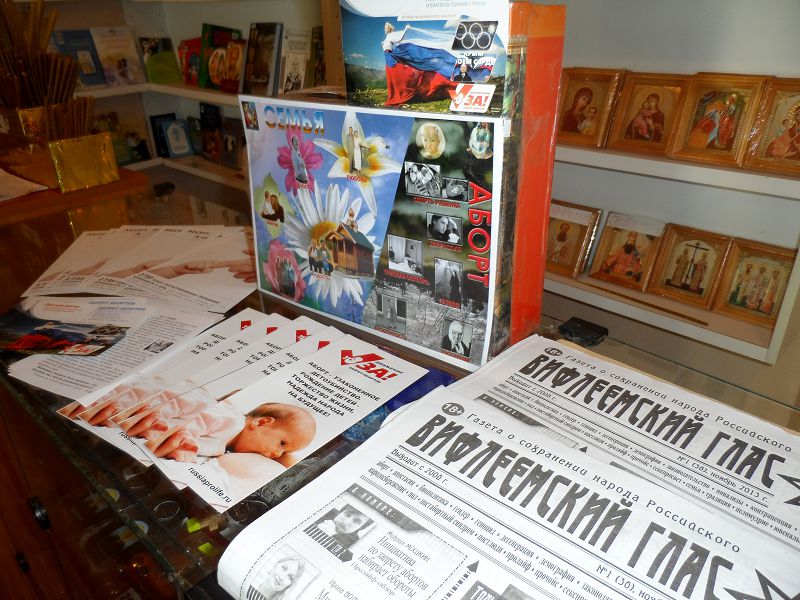 В церковной лавке распространялись листовки и памятки в защиту жизни ещё не родившихся малышей.