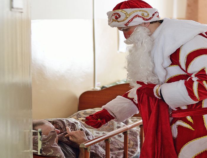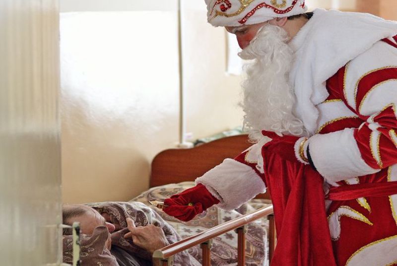 Добрый Дедушка Мороз и его очаровательная внучка Снегурочка поздравили с новогодними и рождественскими праздниками около 80 тяжело болящих людей, которые не имеют возможность по состоянию здоровья покидать свои палаты, подарив им подарки и пожелав здоровья и оптимизма в 2016 году. Жители дома-интерната были тронуты поздравлениями и еще долго не опускали ребят, рассказывая им о своей долгой жизни с богатым опытом и житейской мудростью.