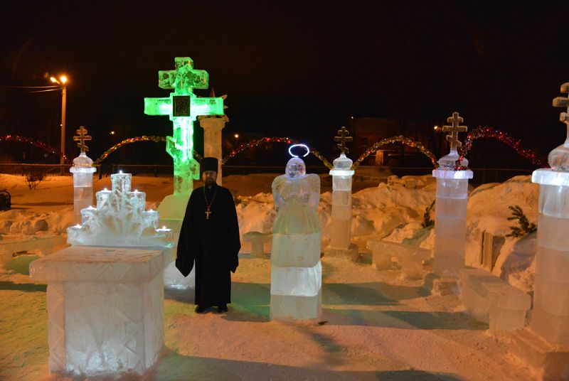 ОРСК. 19 января 2016 г. У храма в честь иконы Божией Матери «Избавительницы» г. Орска появился ряд ледовых скульптур, которые были выполнены настоятелем храма иереем Игорем Гогалюком и прихожанами перед великим праздником Рождеством Христово.