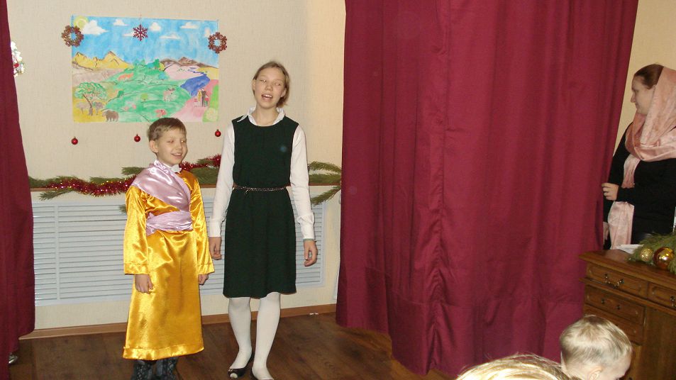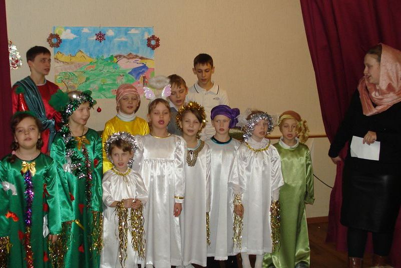 По окончании Божественной литургии в храме Покрова Пресвятой Богородицы все – и взрослые, и малыши – поспешили в воскресную школу при храме поделиться радостью, рождественским чудом. Дети под руководством матушки Марии Атамасовой подготовили представление «Вот и пришло Христово Рождество». Они вместе исполнили для гостей замечательные рождественские песни, танцы. Звонкие детские голоса, словно колокольчики, возвещали миру радость Рождества.