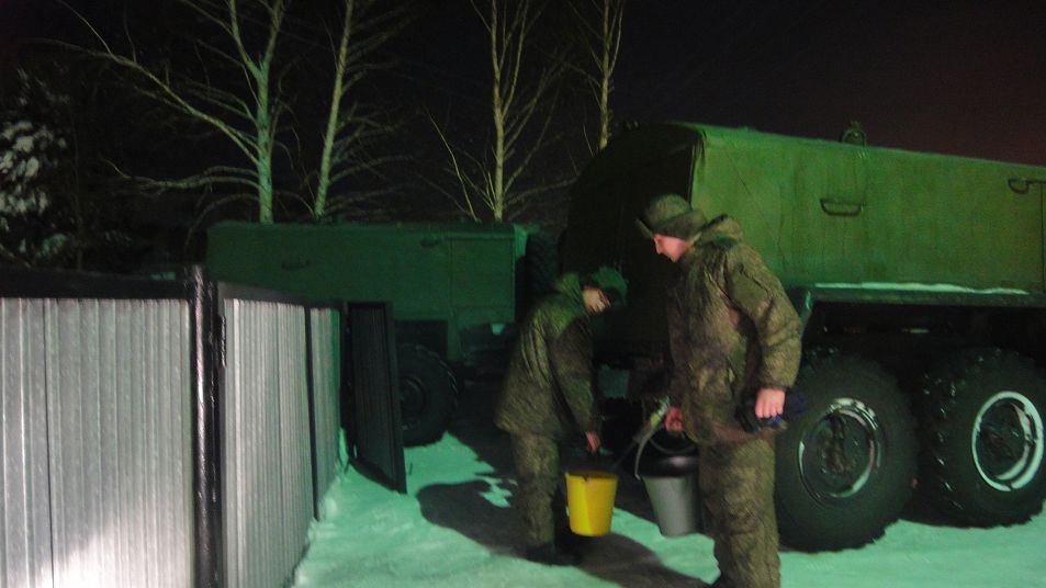 Военные по договоренности с игуменом Онисимом привезли из артезианских скважин воду, которая была освящена великим чином. Часть машин с водой осталась на территории дивизии и ее набирали пришедшие в воинский храм, часть встала пред храмом св. вмч. Пантелеимона, куда и пришли жители Ясного.