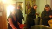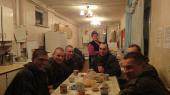 В храме вмч. Пантелеимона сестрой-хозяйкой Ираидой и командой было предоставлено солдатам вкусное трехразовое питание, по словам военных – совсем, как дома. Кроме этого – обязательный горячий чай, т.к. святую воду они носили из водовозов на улице. В конце дня после чаепития солдатам были вручены продуктовые благотворительные подарки. Игумен Онисим (Пашинов) побеседовал с ними об основах Православия, сфотографировался на память, еще раз поздравив с праздником Крещения Господня.