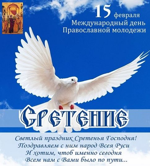 Как это часто бывает в России, в один день, 15 февраля, отмечаются два праздника – церковный и молодёжный: Сретение Господне и День православной молодежи. В контексте Дня православной молодежи праздник Сретенье символизирует знакомство современной молодежи с Православием, его культурой, историческими и духовными ценностями.