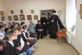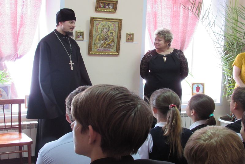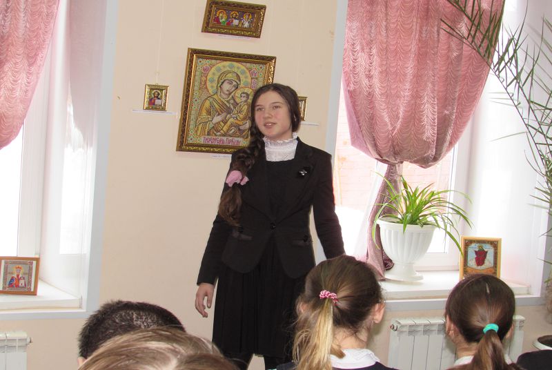 Открыл выставку клирик храма Преображения Господня г. Орска иерей Александр Карпунин. Он рассказал об истории возникновения православной иконы, о её значении в жизни верующих и о возрастающем интересе к Православию, а Ольга Казарина (6-й класс Православной гимназии) исполнила песню «Дорогою добра».