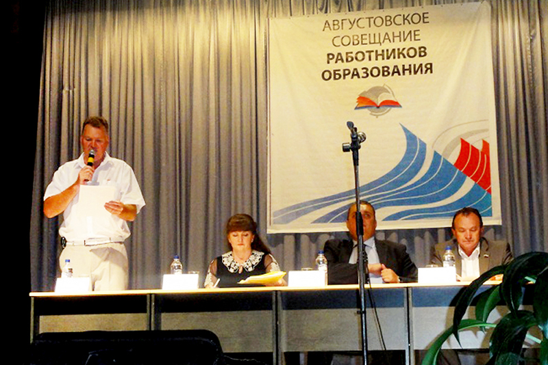 Первым выступил с докладом на совещании глава министерства образования г. Медногорска Олег Михайлов. Он подвёл итоги прошедшего учебного года, указал на недостатки: высокий процент учителей пенсионного возраста; большие траты на содержание полупустых школ; отсутствие выплат подъёмных средств молодым специалистам; 5,4% учителей являются «условными» специалистами; недостаточное развитие сети учреждений инновационного типа (1 учреждение); недостаточная результативность участия школьников в различных этапах Всероссийской предметной олимпиады и т.д. В то же время О.Михайлов порадовал преподавателей сообщением о предстоящем увеличении окладов.