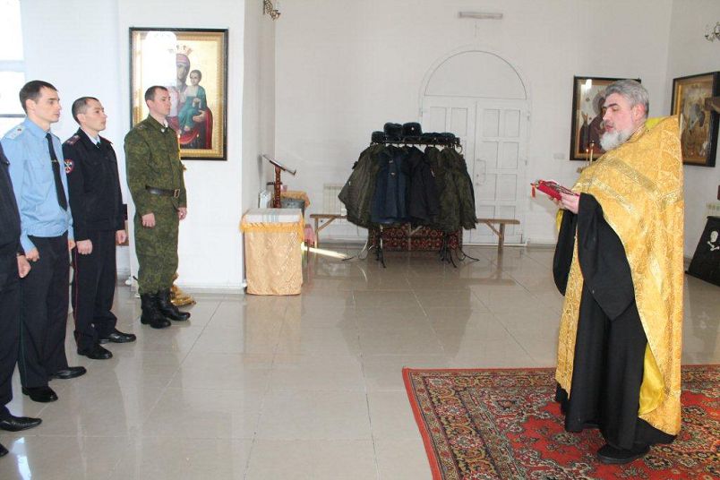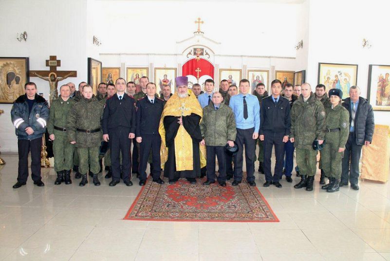 АДАМОВКА. 19 февраля 2016 г. Накануне дня защитника Отечества благочинный Адамовского округа иерей Вячеслав Кочкин в храме Покрова Пресвятой Богородицы посёлка Адамовка совершил молебен о здравии военнослужащих и представителей органов внутренних дел.