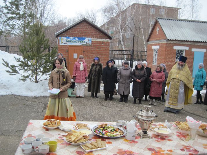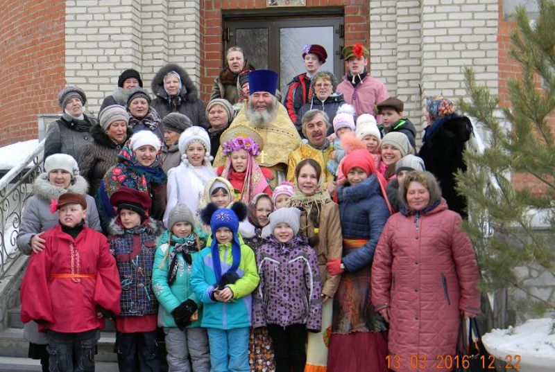 В день Прощеного воскресенья, после служения литургии и молебна с водоосвящением, прихожане и ученики воскресной школы вышли во двор храма, где их ожидал праздничный сюрприз – игровые проводы зимы и встреча весны. Программу праздника придумывали сами дети и педагоги воскресной школы, и, когда все загадки были отгаданы, спеты песни, гостей пригласили за широкий, богатый, как душа православного человека, стол. Вкусные блины, испеченные приходским поваром Галиной Токаревой, манили своим аппетитным запахом, горячий чай из самоваров с привкусом трав, согревали ребят и взрослых. Этот замечательный день подарил светлую радость многим прихожанам, и примиренные друг с другом все вернулись в свои дома, неся в сердцах искорку этой чистой радости, которая непременно поможет на духовном пути каждому - ведь впереди Великий пост.