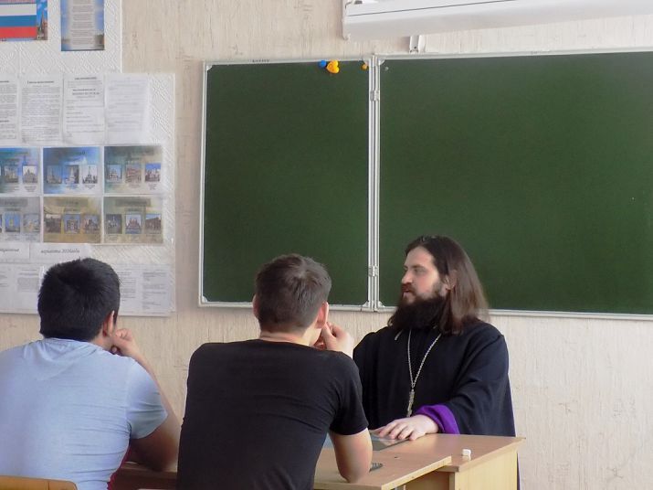СВЕТЛЫЙ. 21 марта 2016 г. Настоятель храма в честь Покрова Пресвятой Богородицы пос. Светлого иерей Михаил Рябинов посетил Светлинскую общеобразовательную школу № 2, где проходили военно-патриотические сборы среди учащихся 8-х классов.