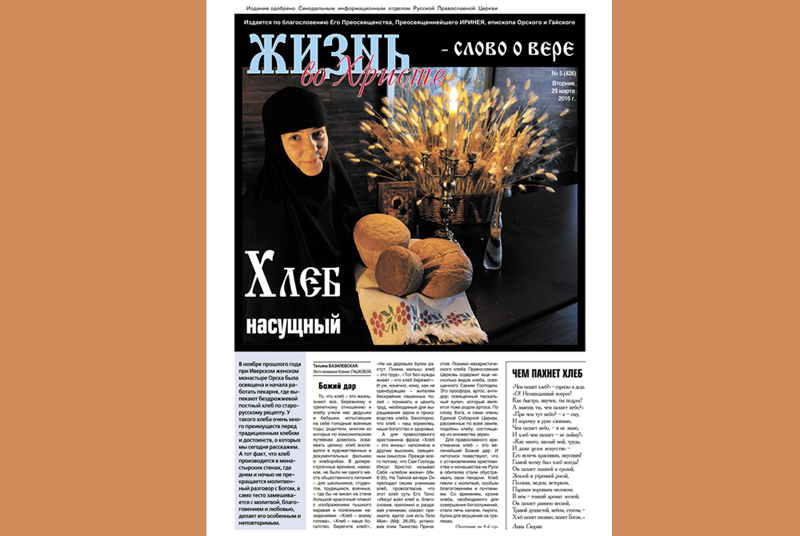 При Иверском женском монастыре г. Орска начала работать пекарня, где с молитвой, благоговением и любовью выпекают бездрожжевой постный хлеб по старорусскому рецепту. У этого хлеба очень много преимуществ перед традиционным хлебом и достоинств, о которых читатель узнает из статьи Т.Базилевской «Хлеб насущный».