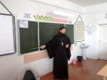СВЕТЛЫЙ. 11 апреля 2016 г. Настоятель храма в честь Покрова Пресвятой Богородицы пос. Светлого иерей Михаил Рябинов побывал в Целинной основной общеобразовательной школе, где провёл с учащимися беседу ко Дню православной книги.