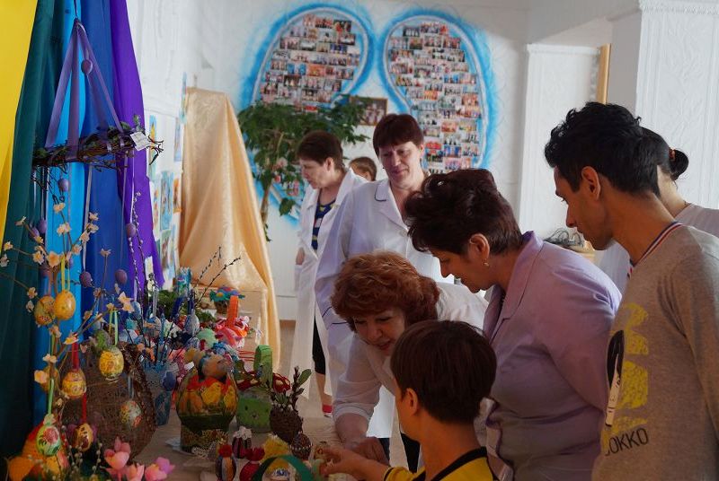ГАЙ. 28 апреля 2016 г. В детском доме-интернате для умственно отсталых детей открылась выставка поделок «Пасхальные лучики».