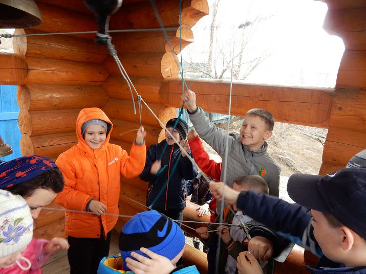 После праздничного чаепития, которое ожидало гостей в классе воскресной школы, все отправились на колокольню, чтобы возвестить пасхальным колокольным звоном миру о Воскресшем Христе!