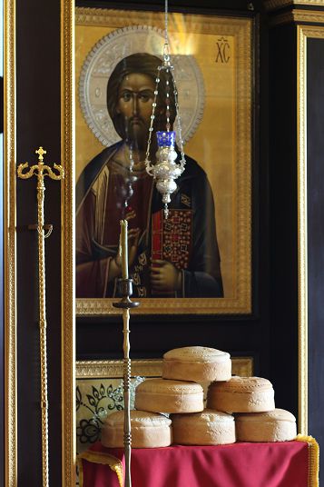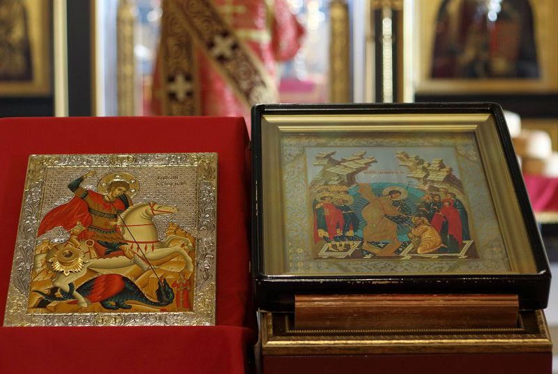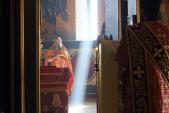 В честь св. великомученика Георгия Победоносца освящен верхний придел собора. Раннюю Божественную литургию совершал клирик собора иерей Евгений Деревянко. После ее окончания отец Евгений совершил чин малого освящения воды, т.к. в этот день совершается и празднование в честь иконы Пресвятой Богородицы «Живоносный источник».
