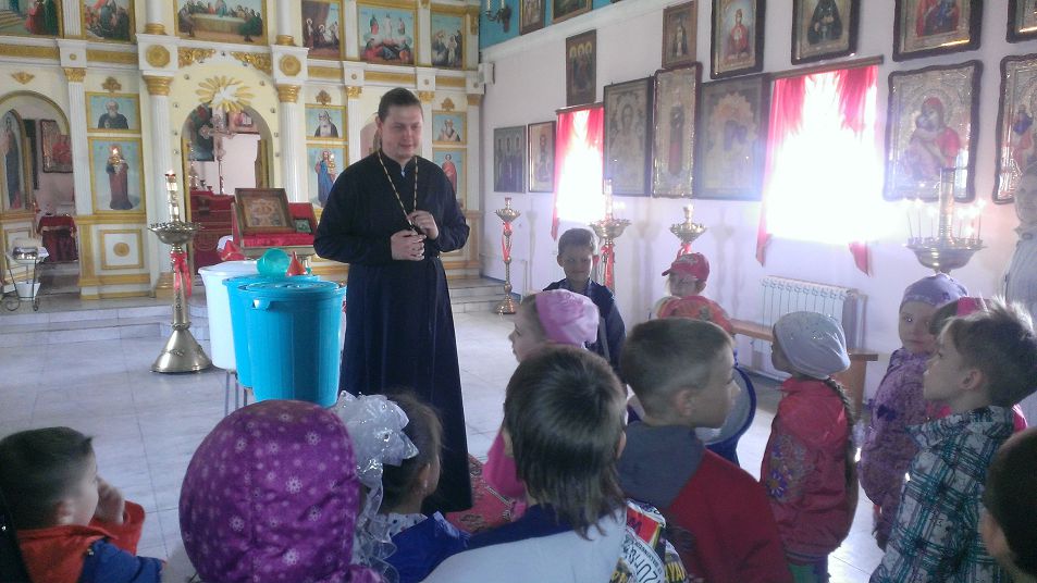 ОРСК. 4 мая 2016 г. Настоятель храма св. вмч. и целителя Пантелеимона иерей Александр Курсаков посетил пасхальный утренник, который проходил в детском саду № 63.
