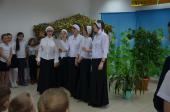 Учащиеся воскресной школы подготовили для гостей праздничный концерт. Разделить с ними пасхальную радость приехали ребята из детского дома. Гости с удовольствием слушали песни, стихи, с интересом смотрели сказку «Пасхальный колобок», которую подготовили ребята старшей и средней группы.
