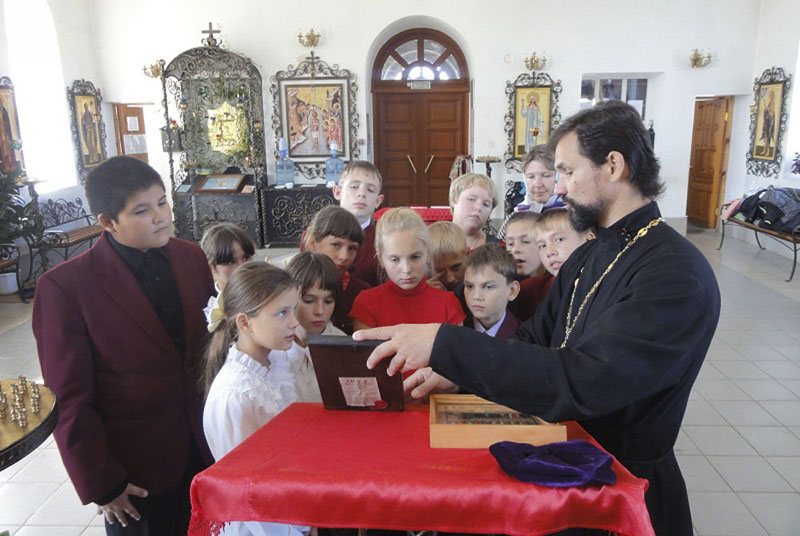 МЕДНОГОРСК. 10 сентября 2012 г. В храме святителя Николая Чудотворца (микрорайон «Южный») регулярно проводятся экскурсии для детей. Вот и в самые первые дни нового учебного года сюда пришли ребята одной из общеобразовательных школ, чтобы узнать о православии, о храме, пообщаться со священником.